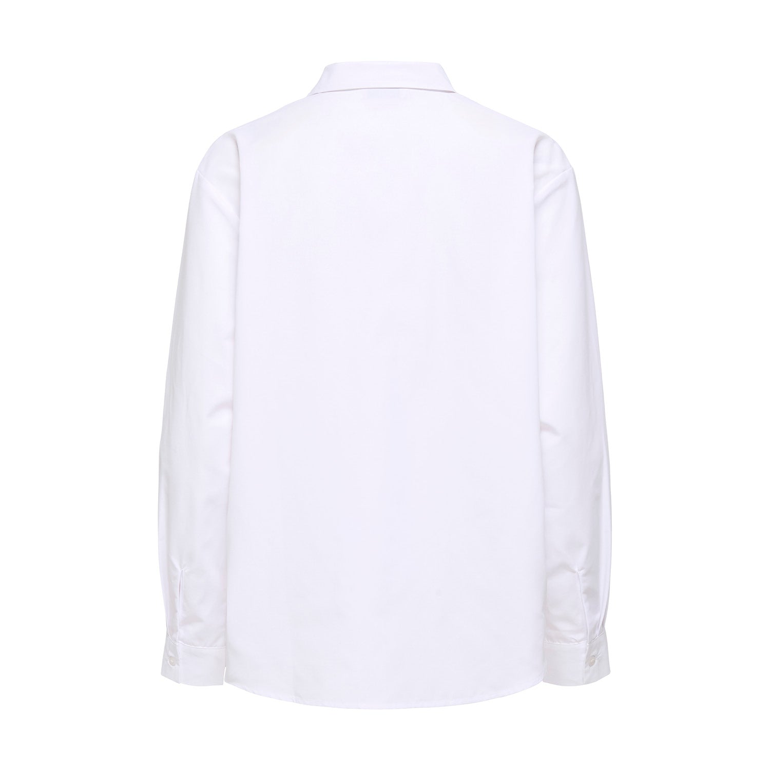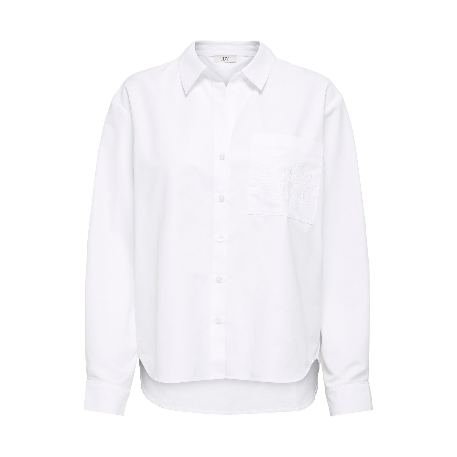 Weiße Basic-Bluse mit Stickerei auf einer Brusttasche.