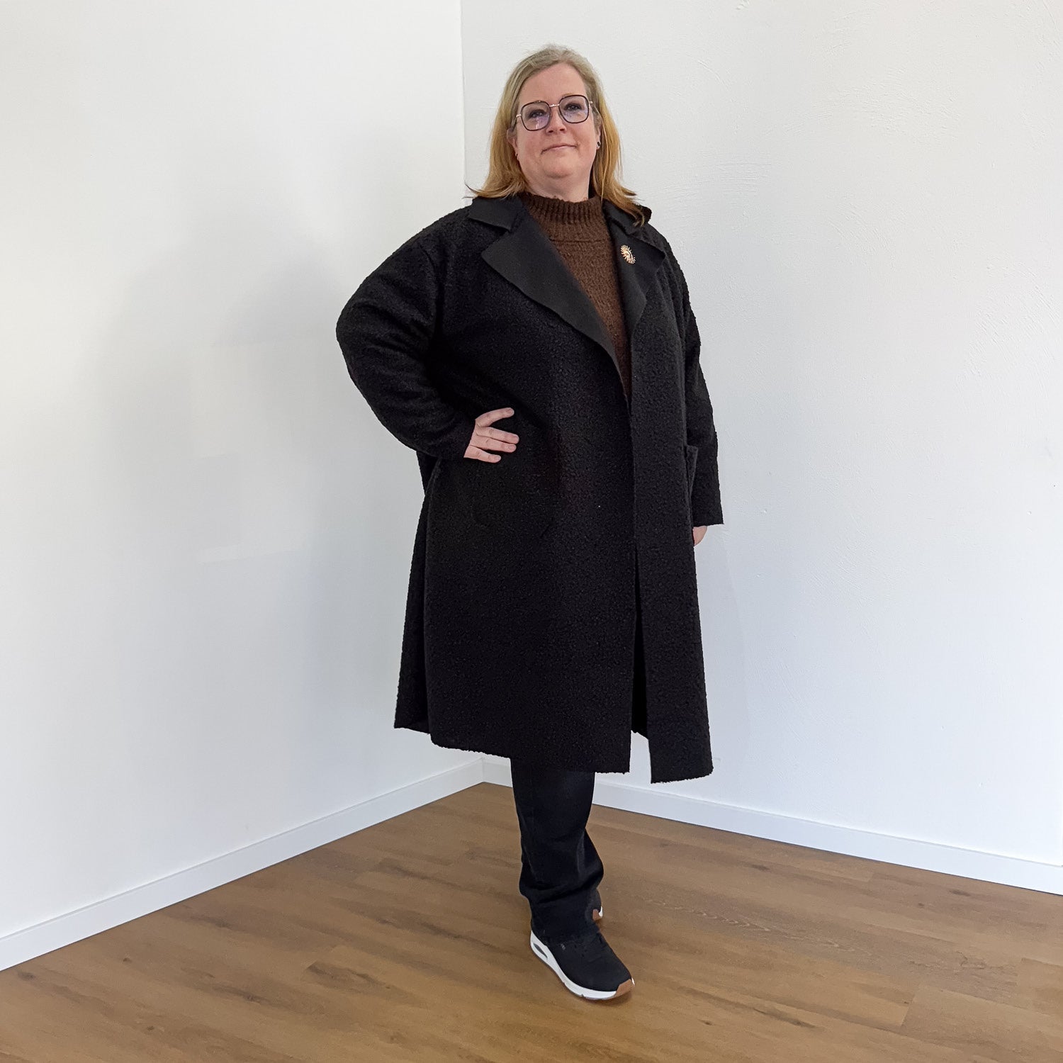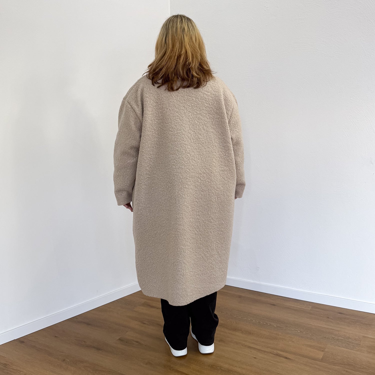 Weicher Bouclé-Mantel mit Taschen und Brosche.