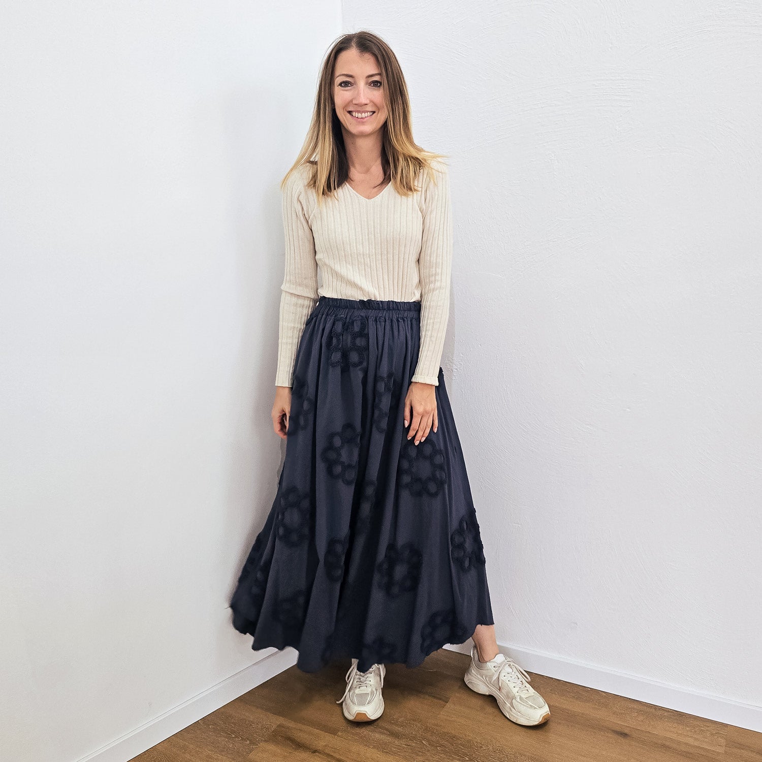 Fließender Baumwoll-Rock mit Kuschelblumen.