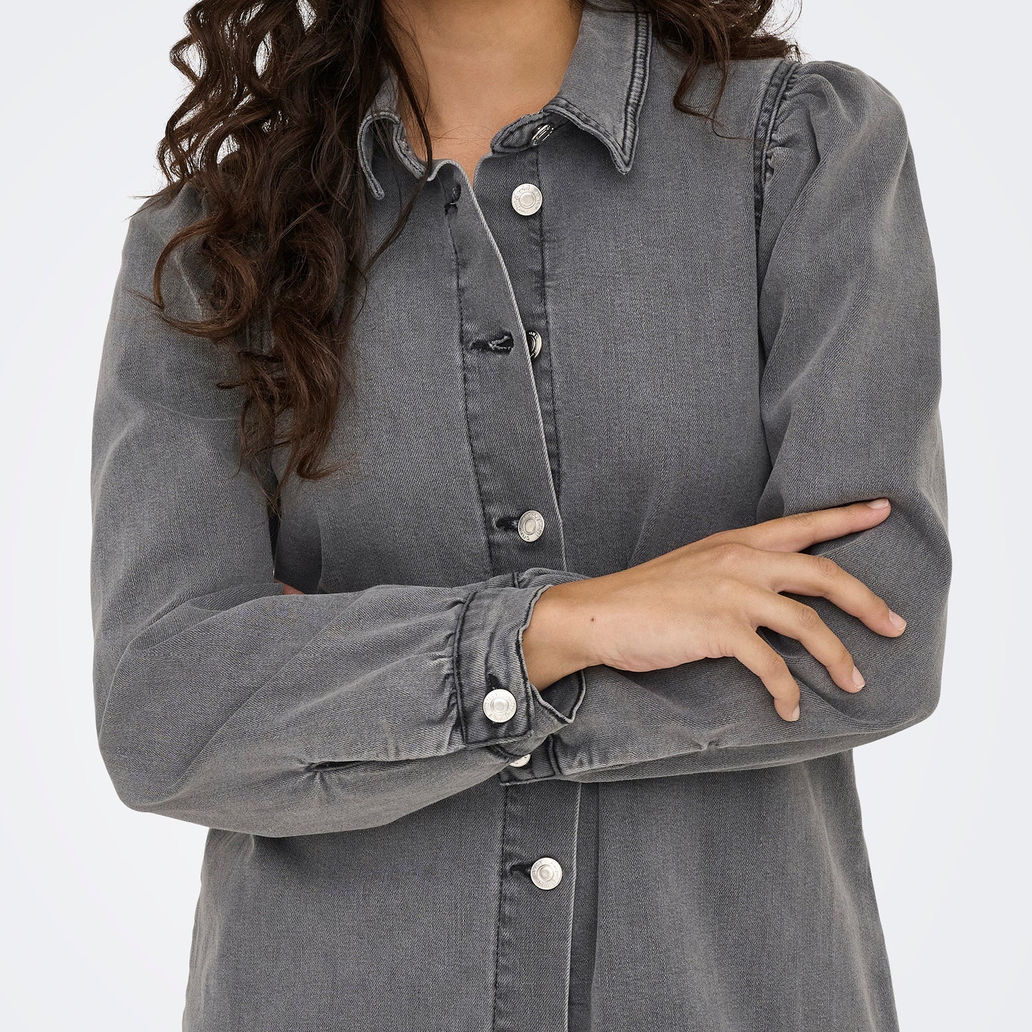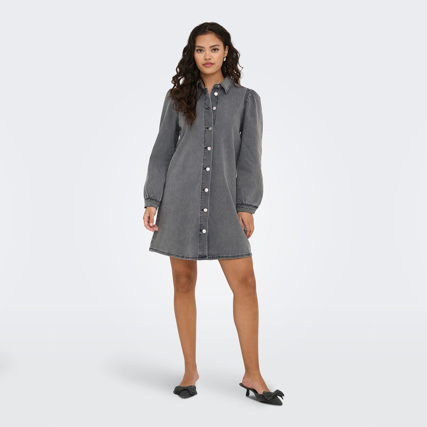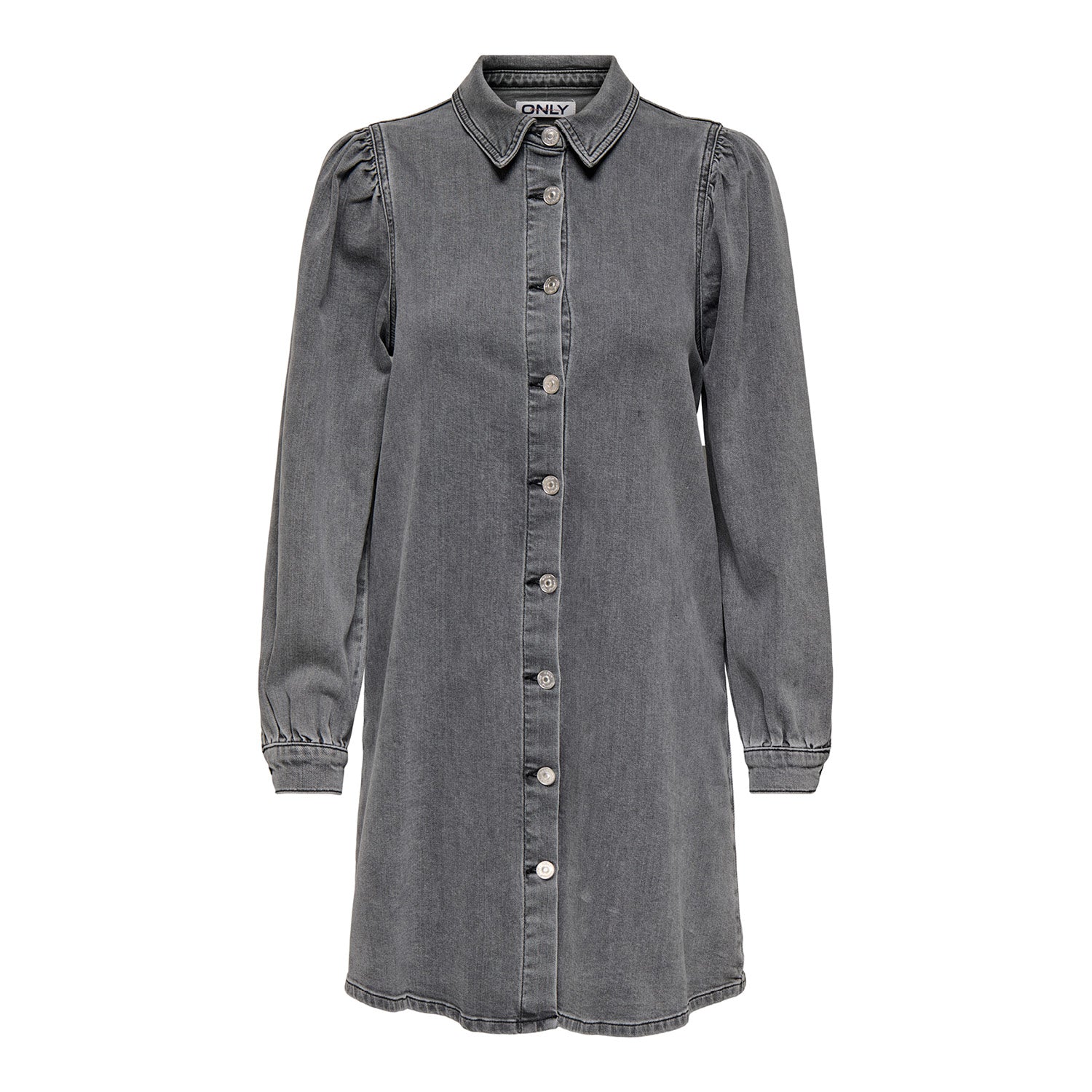 Süßes Jeanskleid zum Knöpfen und leichte gepufften Schultern.
