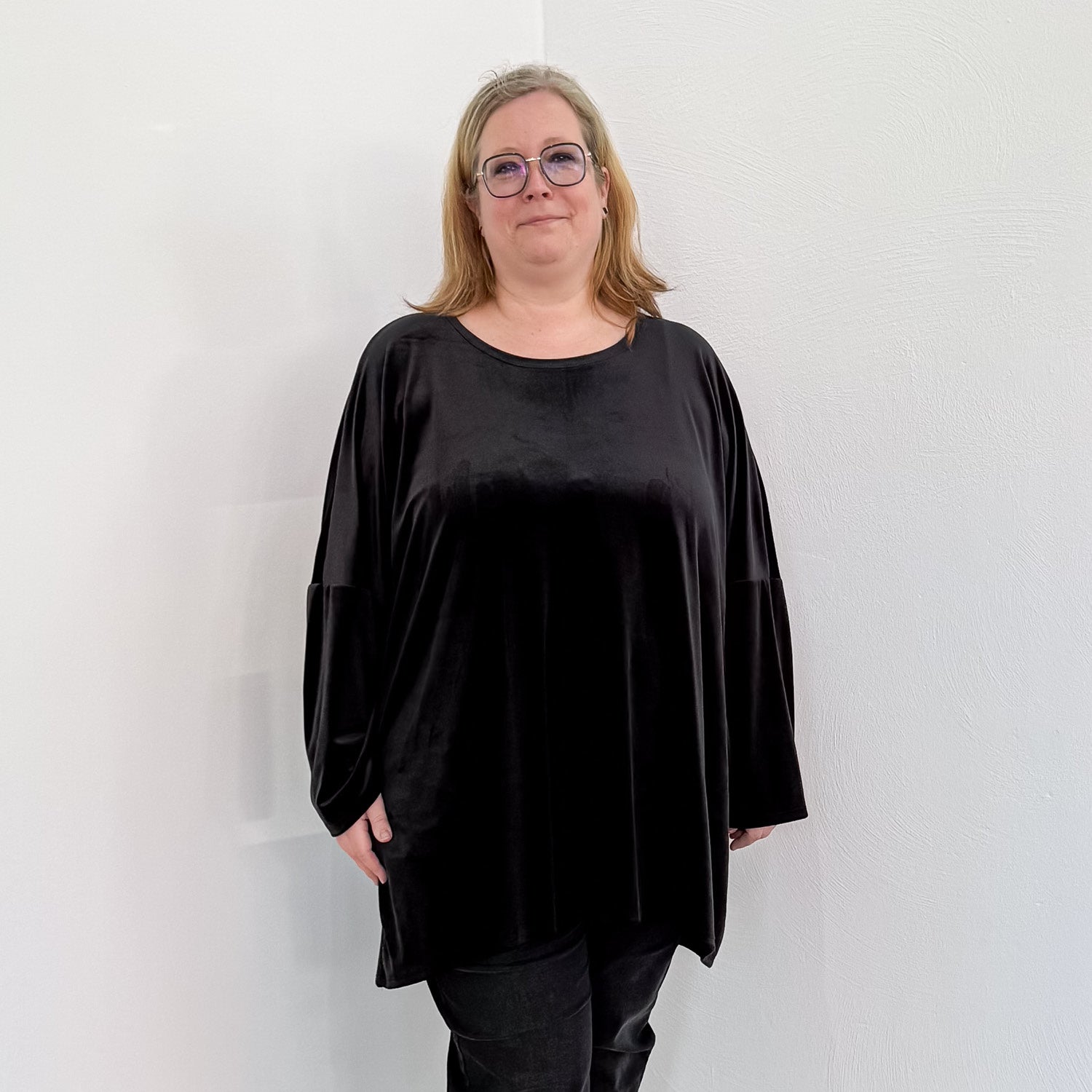 Kuscheliger Samtpullover mit leichten Vokuhila-Schnitt.