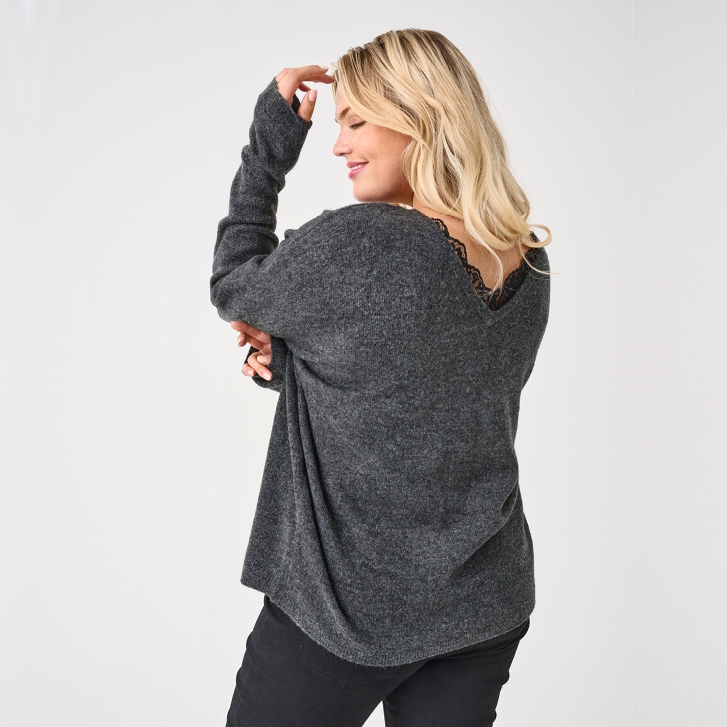 Weicher Wende-Pullover mit Spitzenausschnitt.