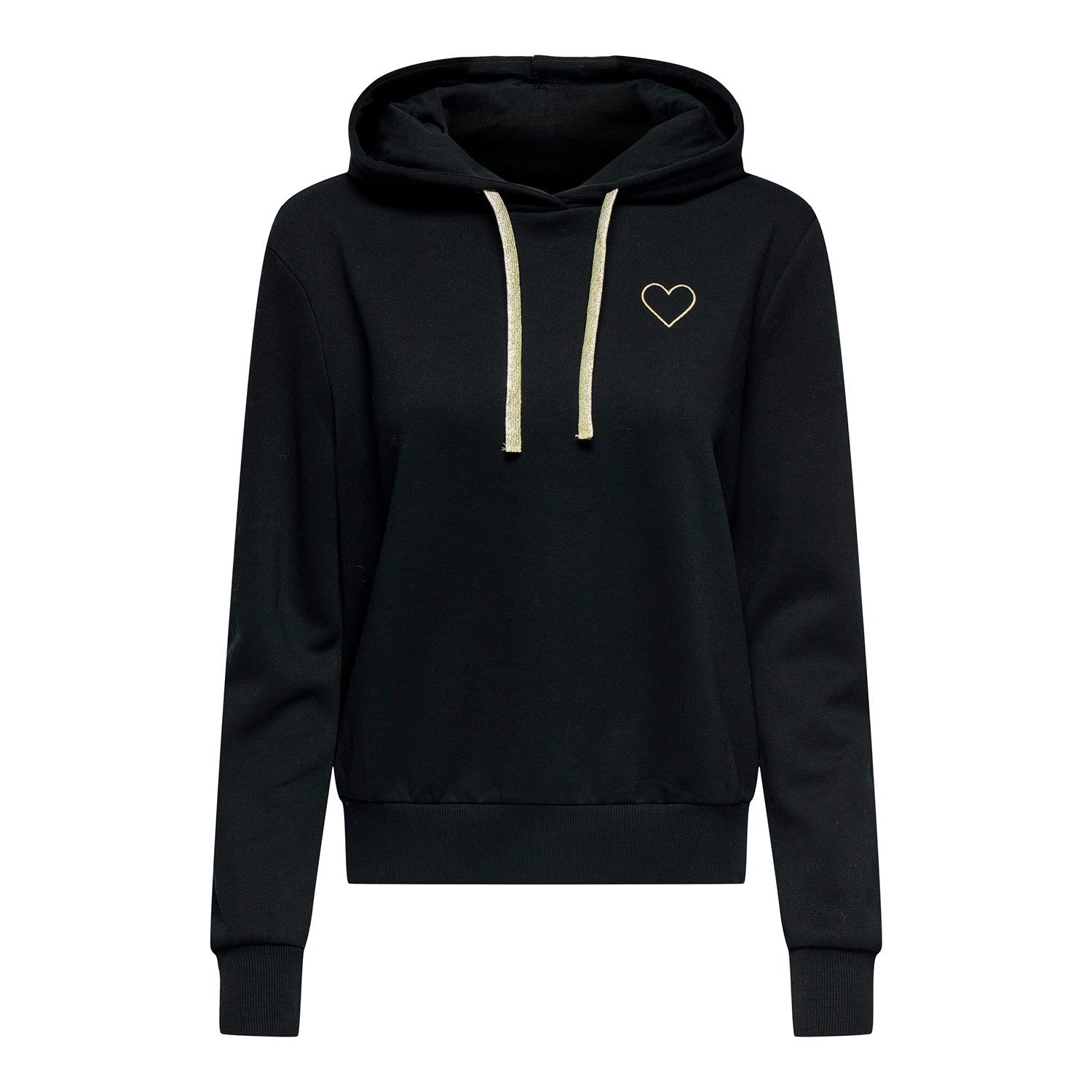 Kapuzen-Pullover mit Gold-Stickerei und Bändeln.