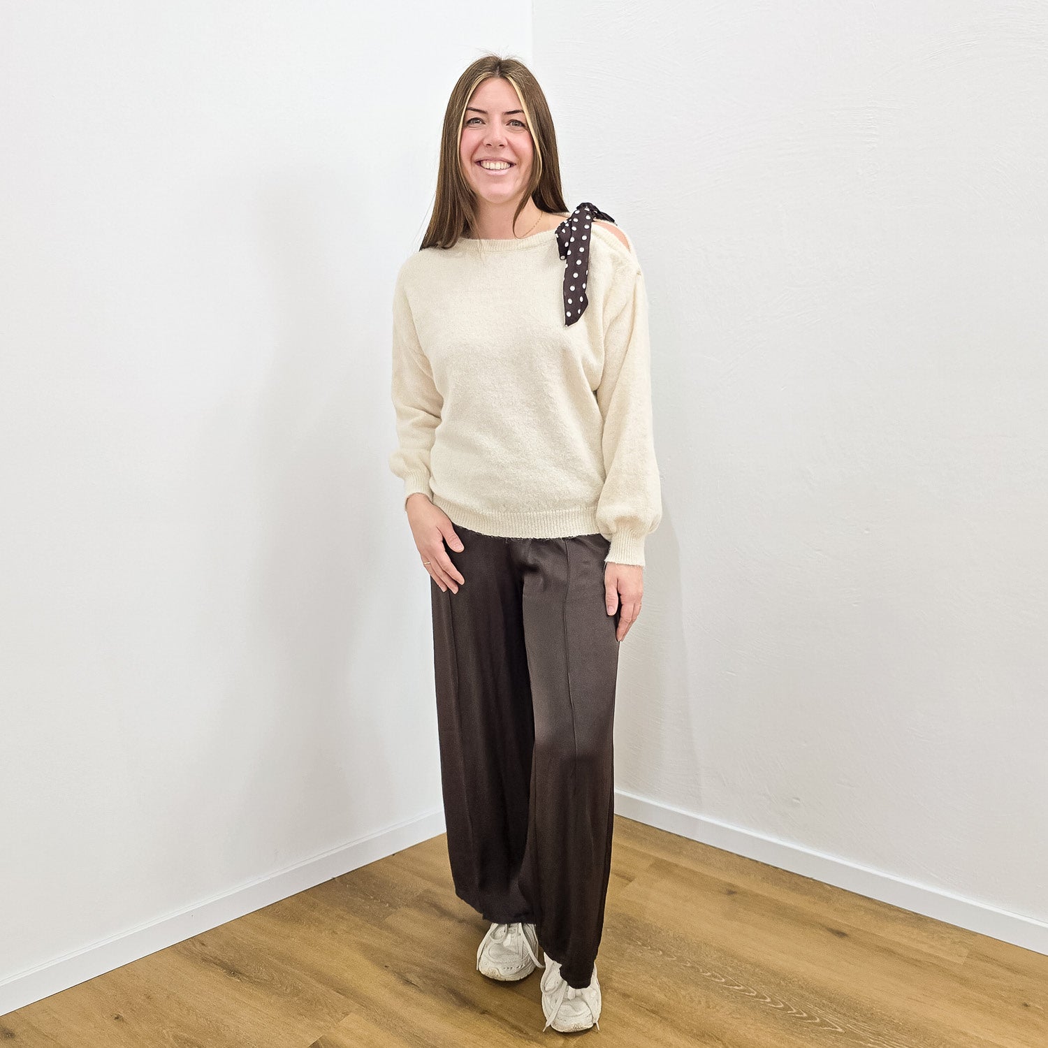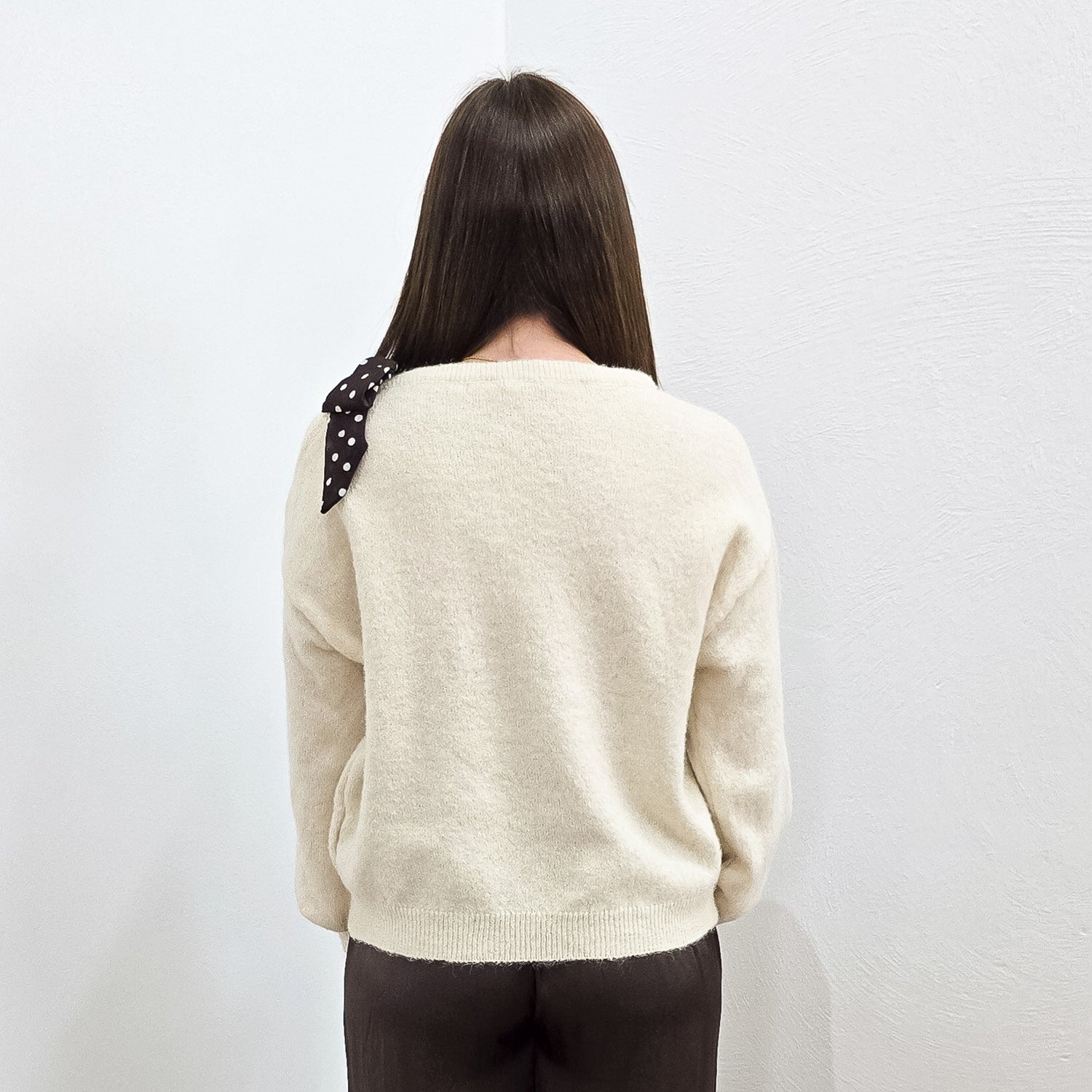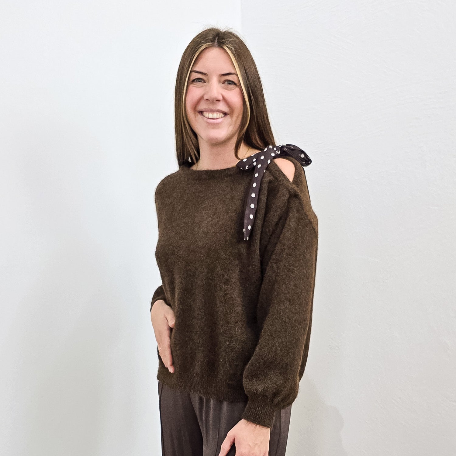 Weicher Pullover mit süßer Schleife und einseitig offener Schulter.