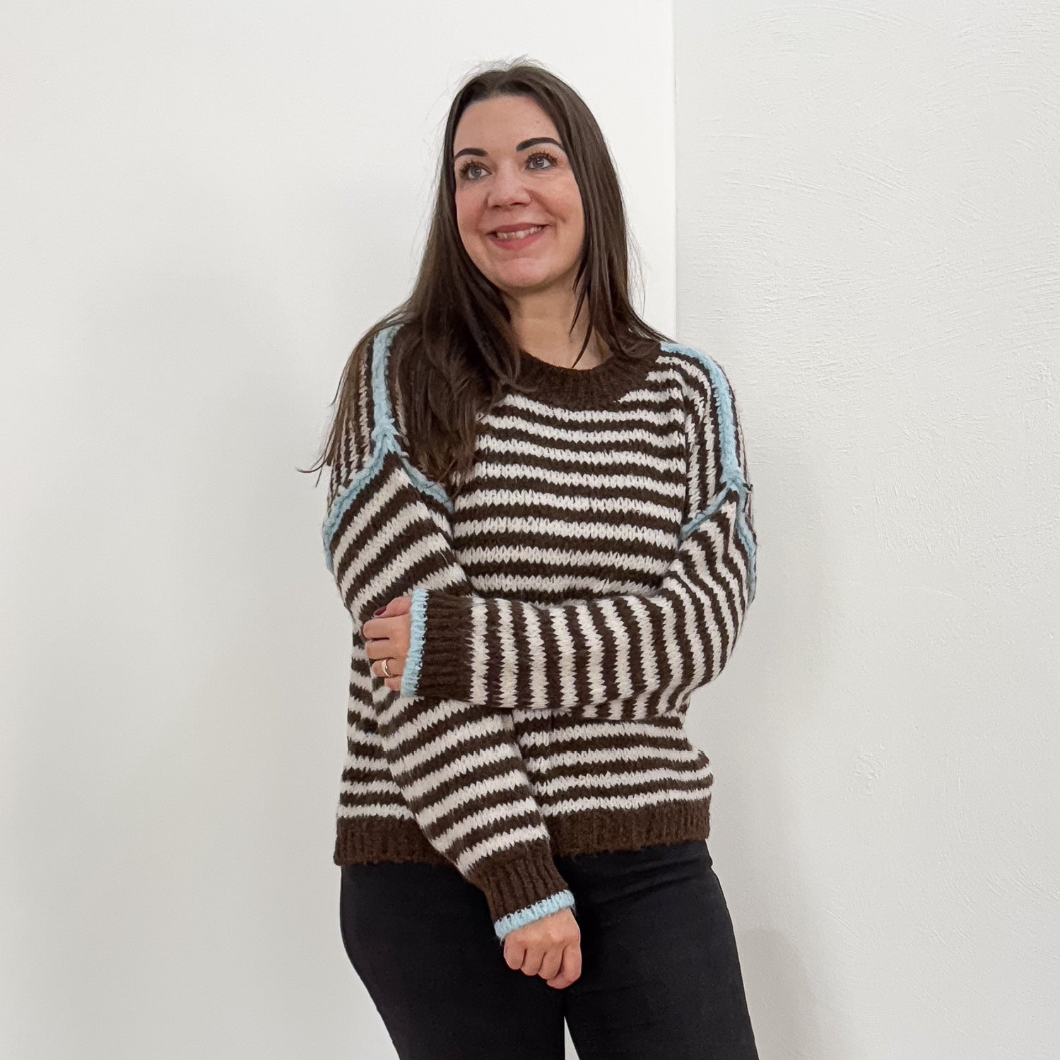 Weicher Pullover mit knalligen Akzenten.