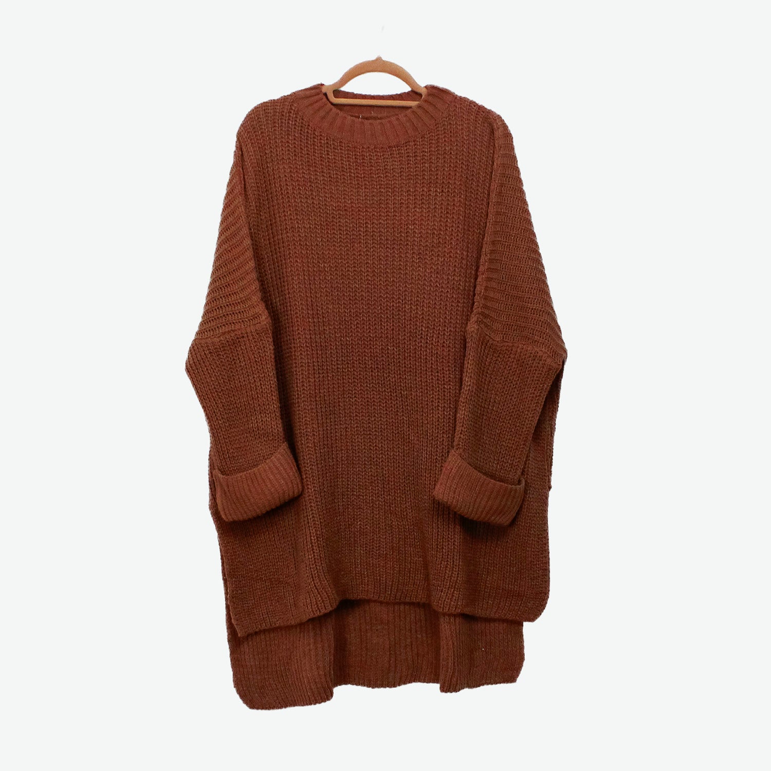Gemütlicher Pullover mit seitlichem Schlitz. Länger geschnitten. Fusselt und kratzt nicht.