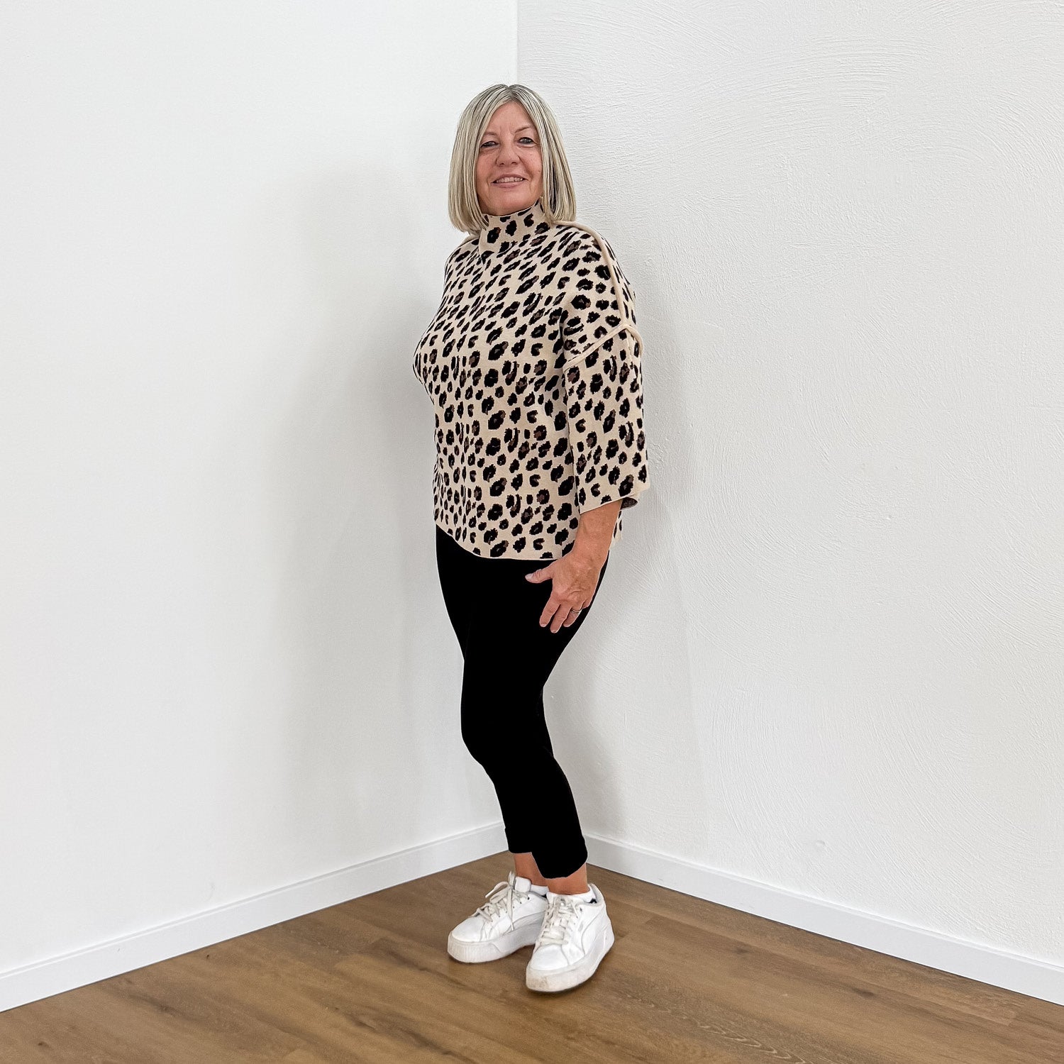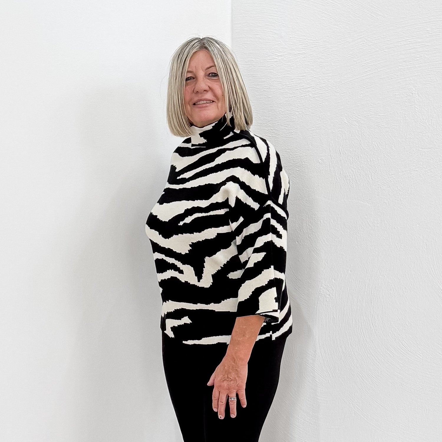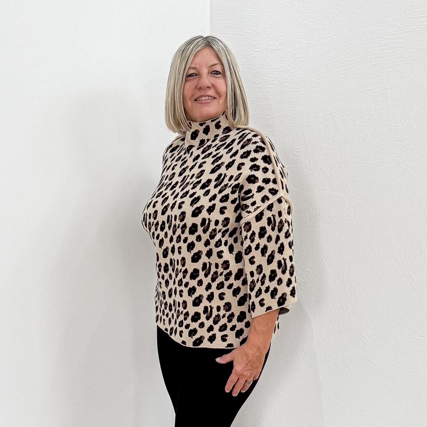 Superweicher Pullover mit Stehkragen und kürzeren Ärmeln.