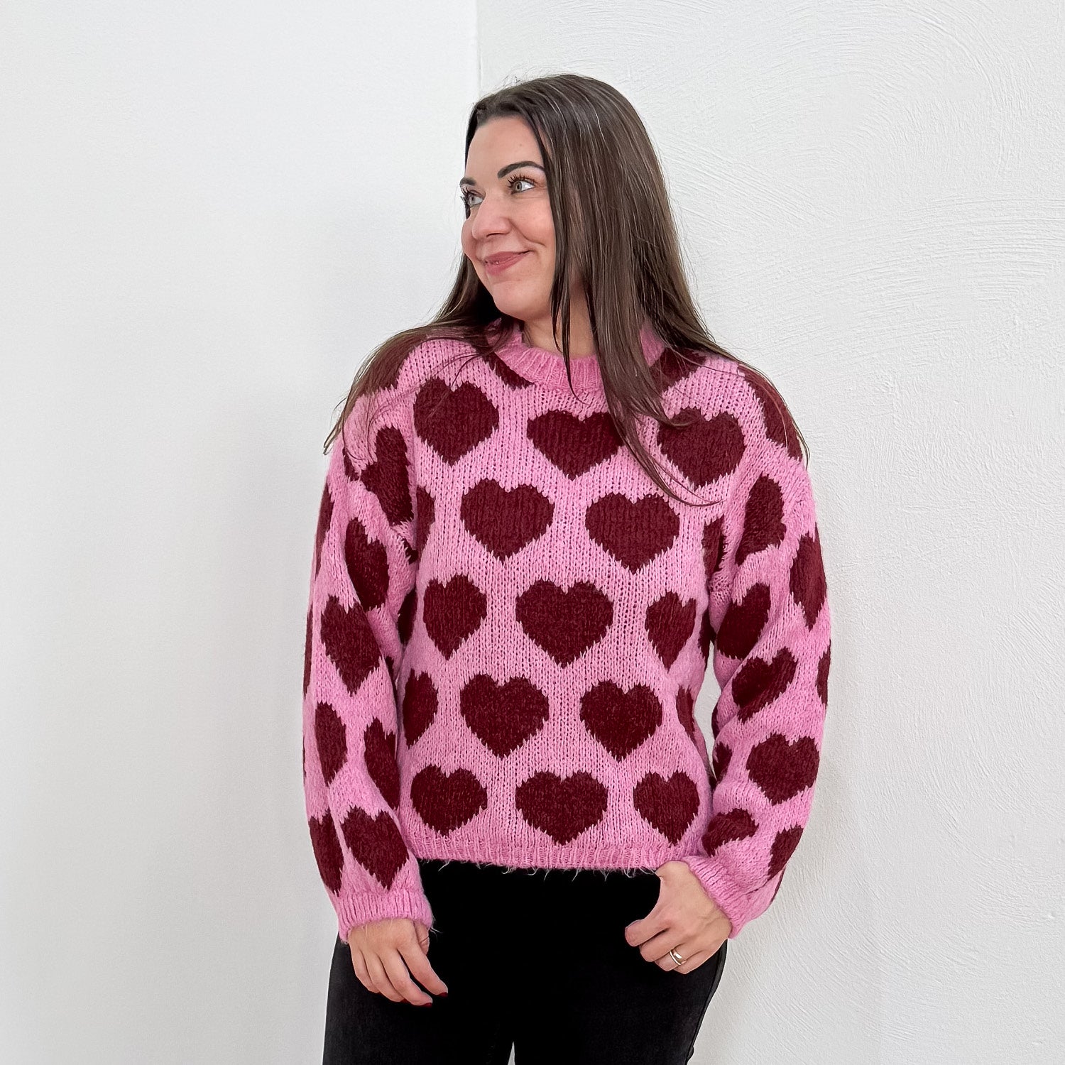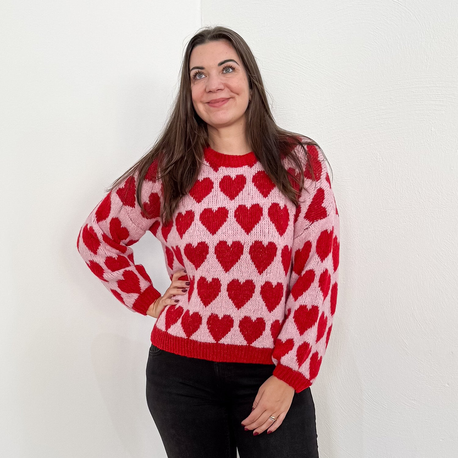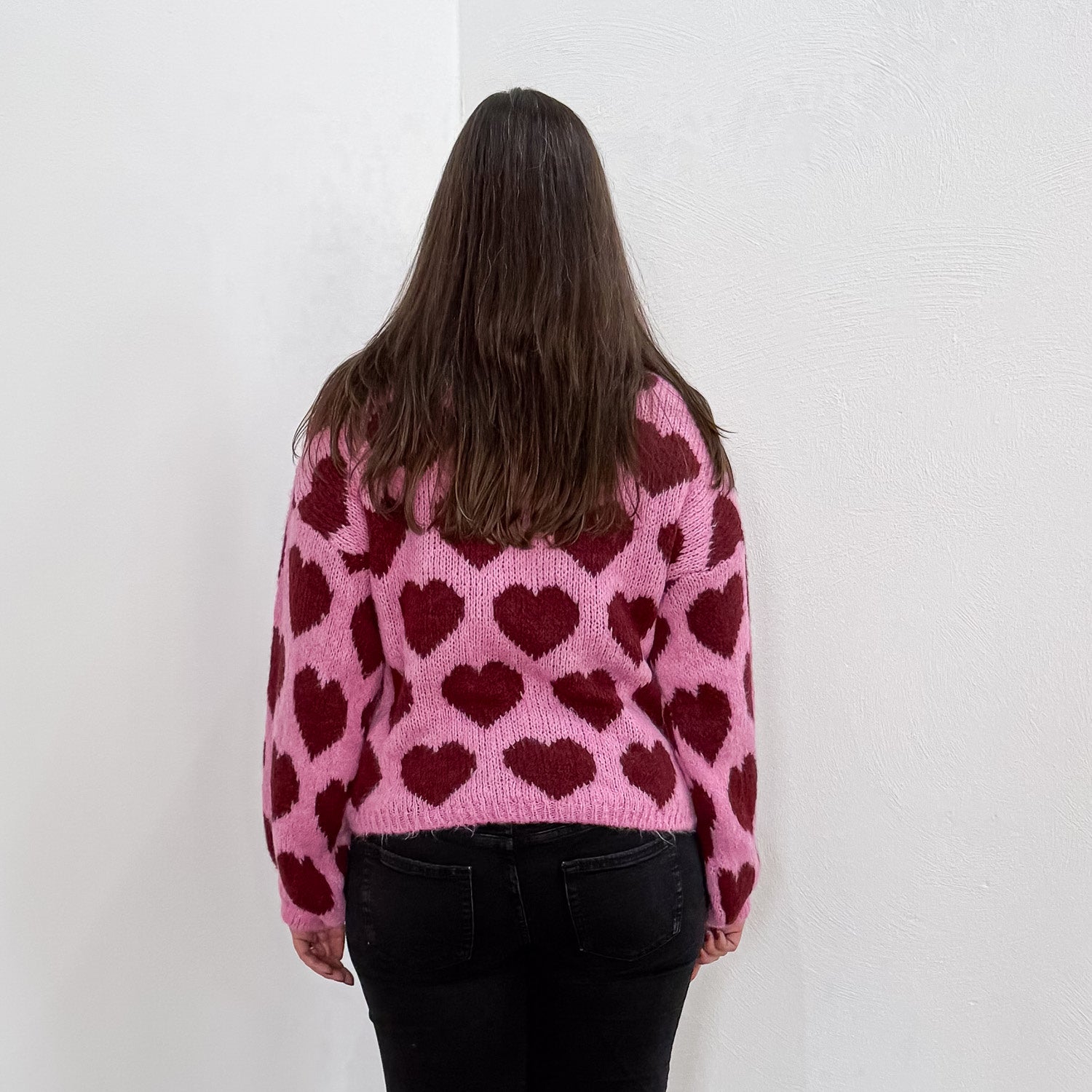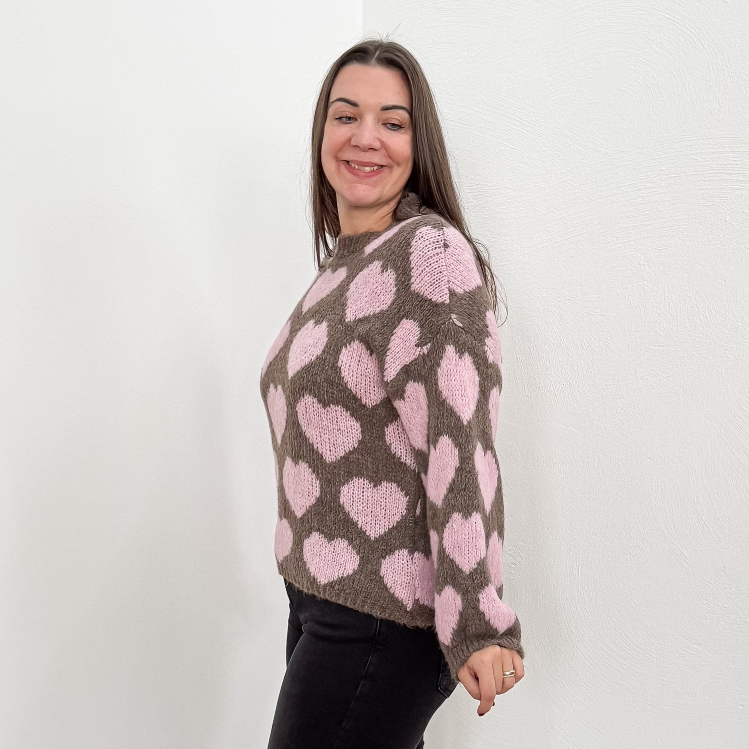 Süßer und weicher Herzchen-Pullover mit leichtem Stehkragen.
