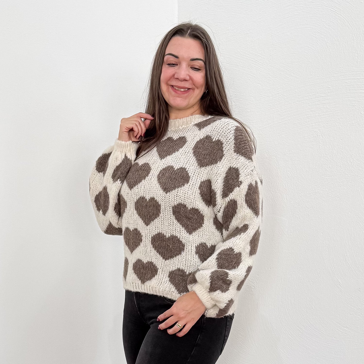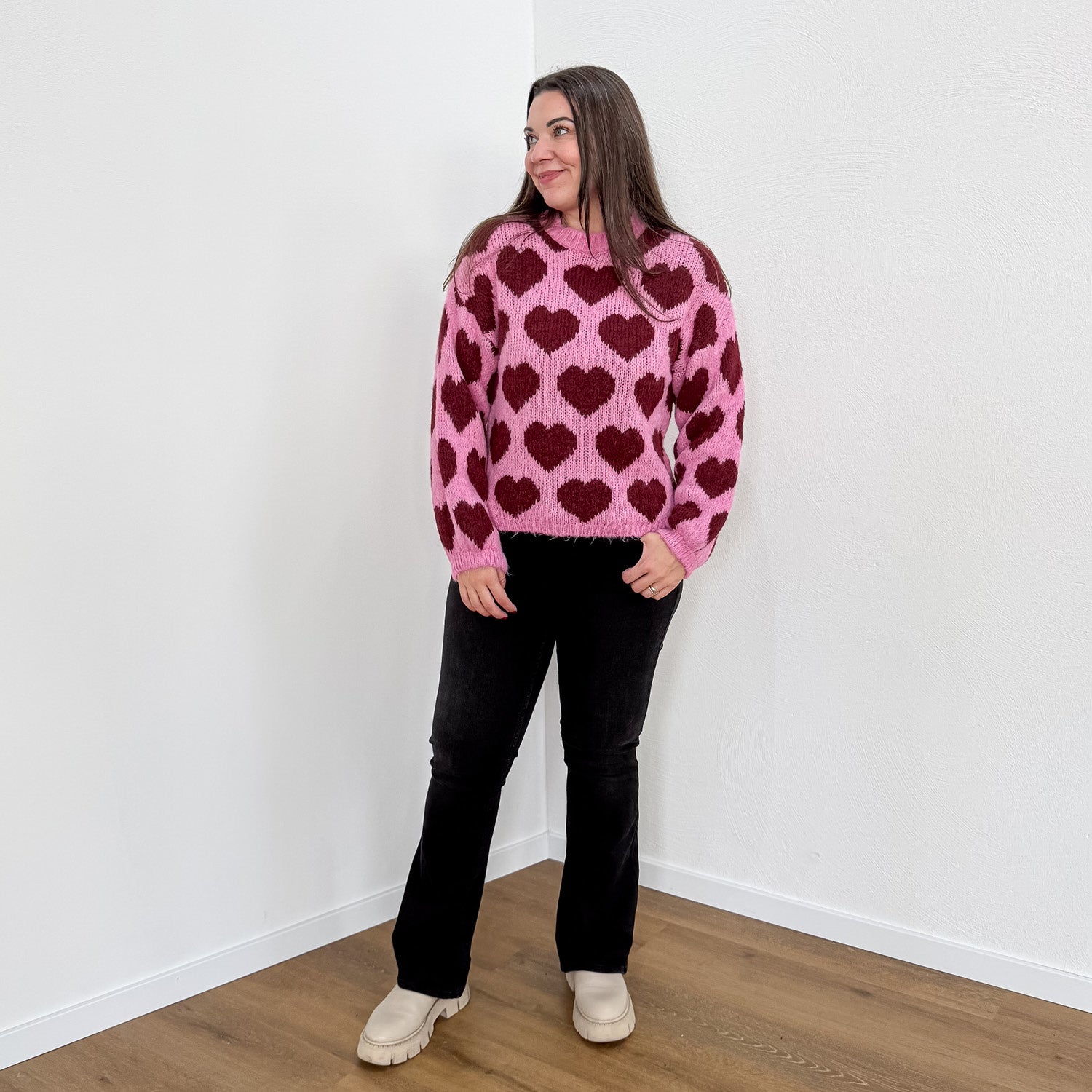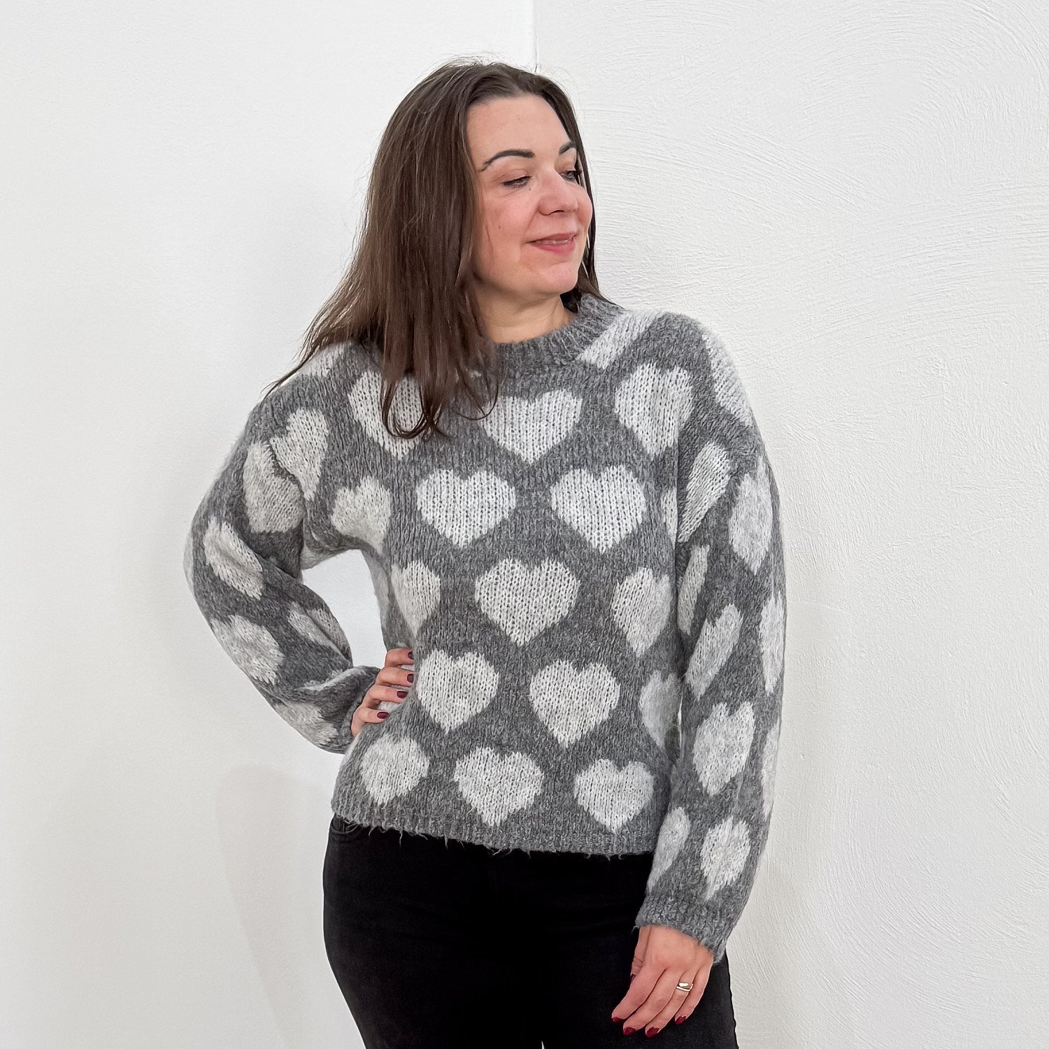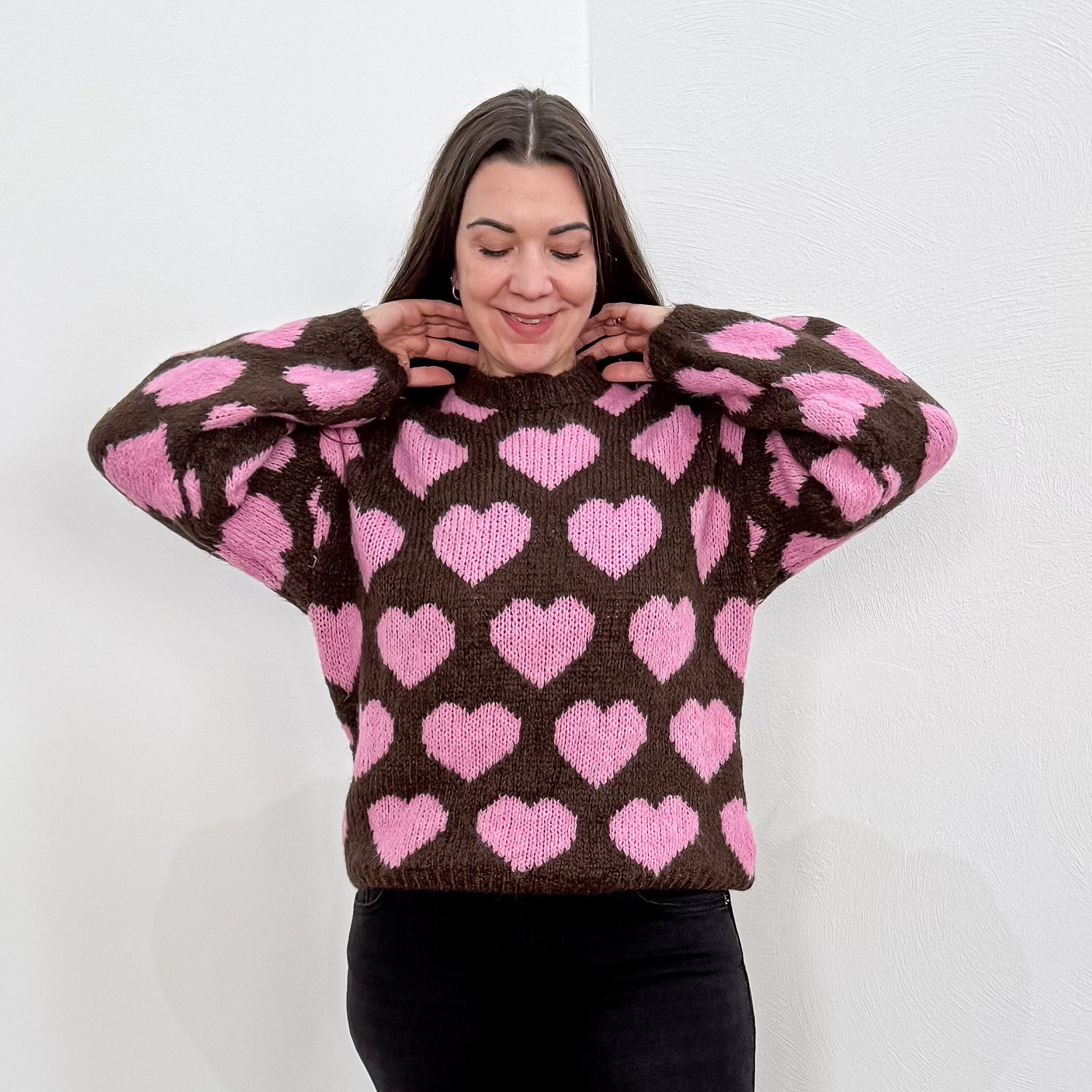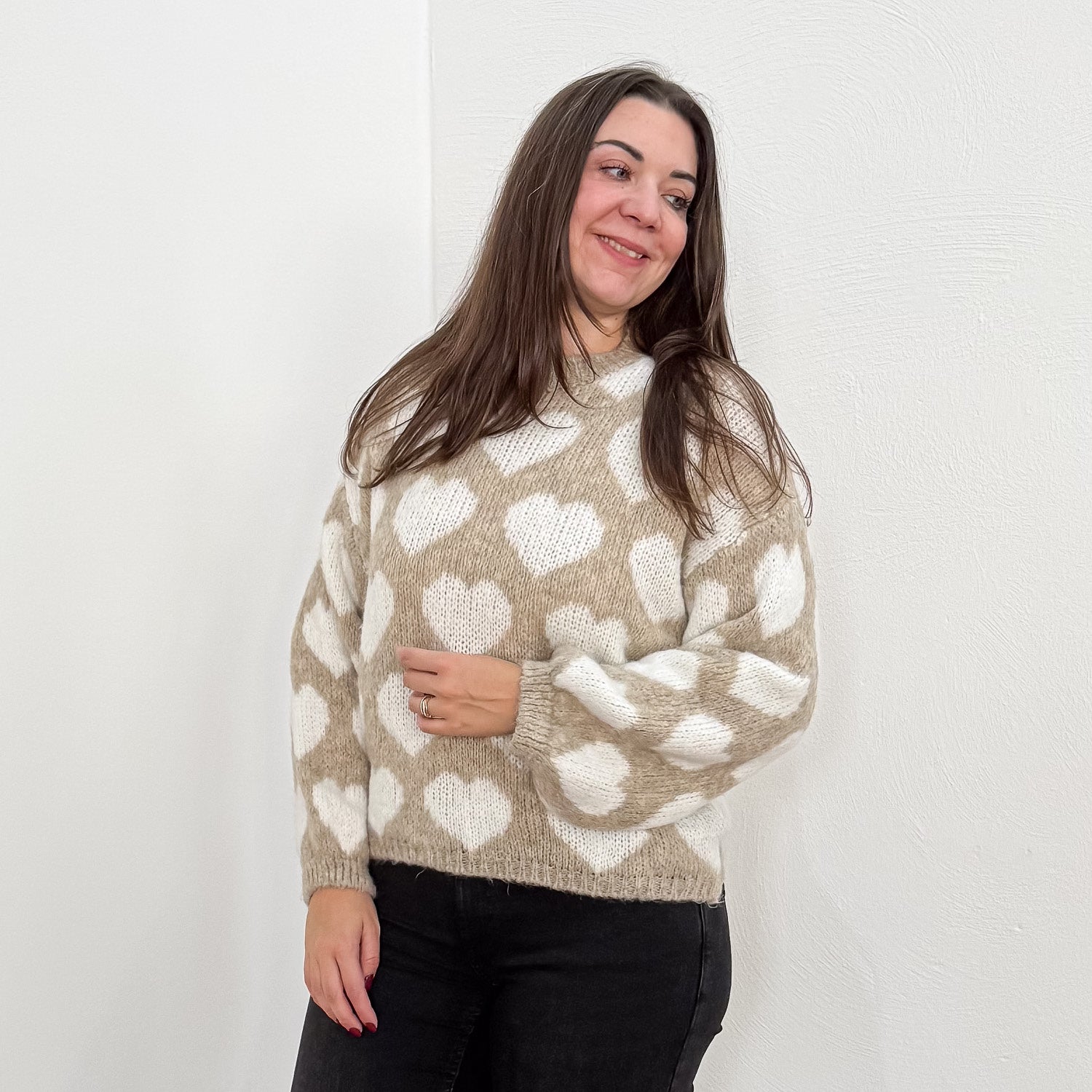 Süßer und weicher Herzchen-Pullover mit leichtem Stehkragen.