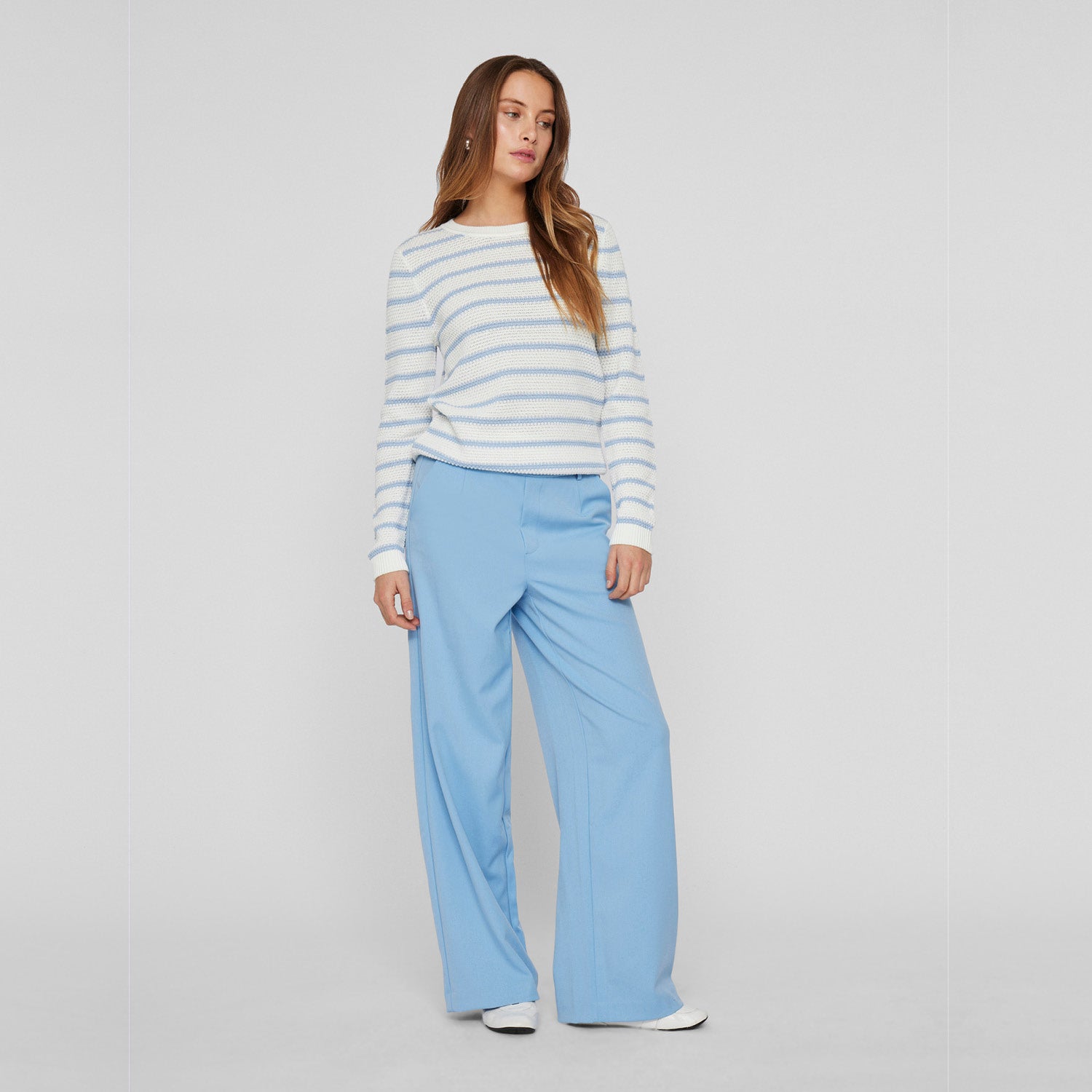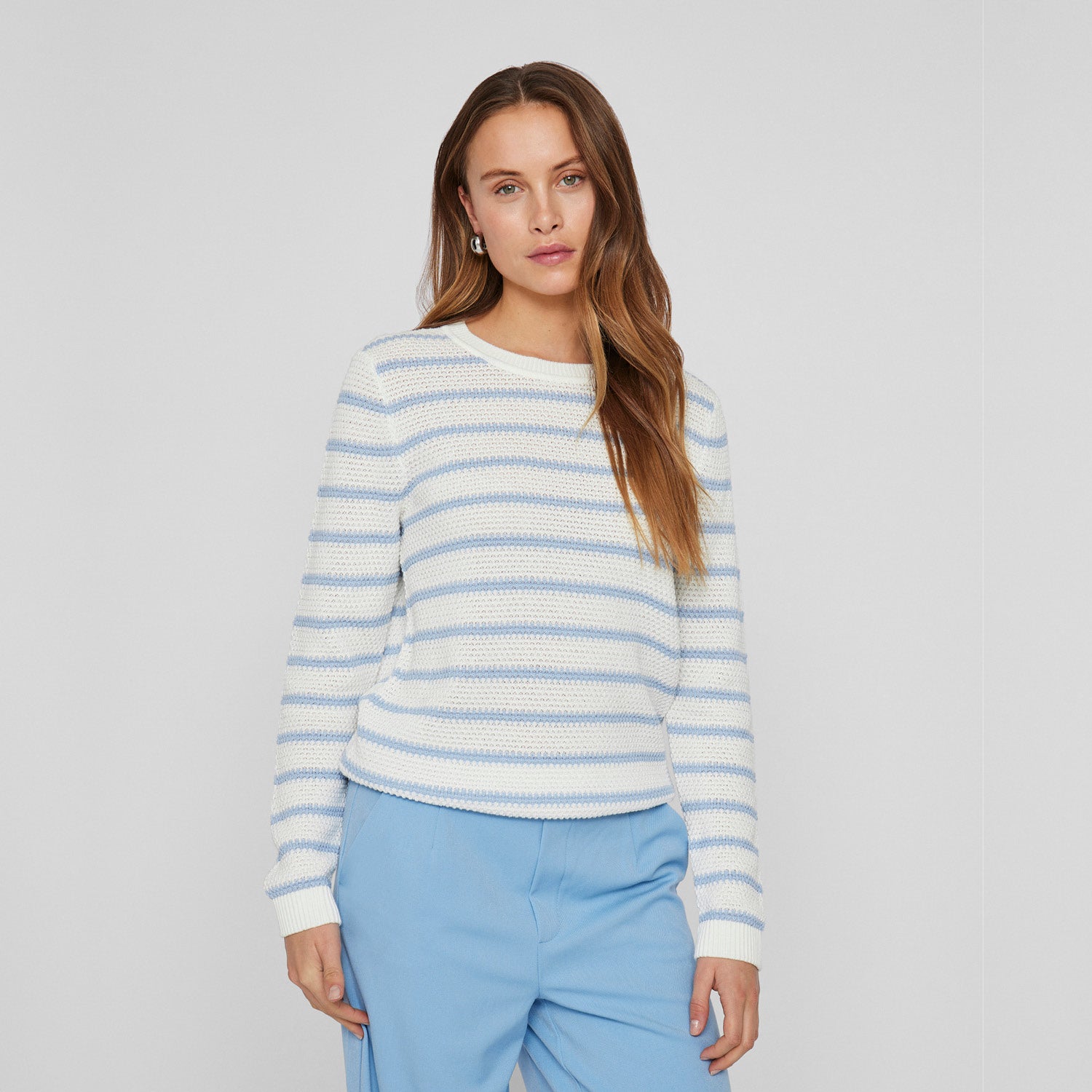 Strickpullover mit feinen Streifen.