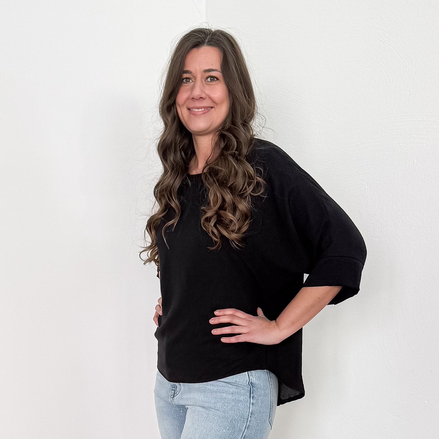 Fließendes und leichtes Shirt mit 3/4 Arm aus Viskose.