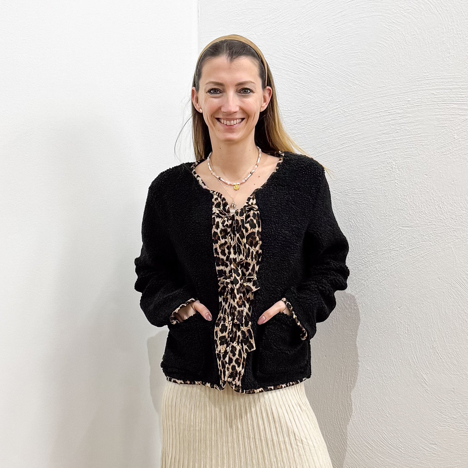Süße Strickjacke mit Leo-Akzenten und Taschen