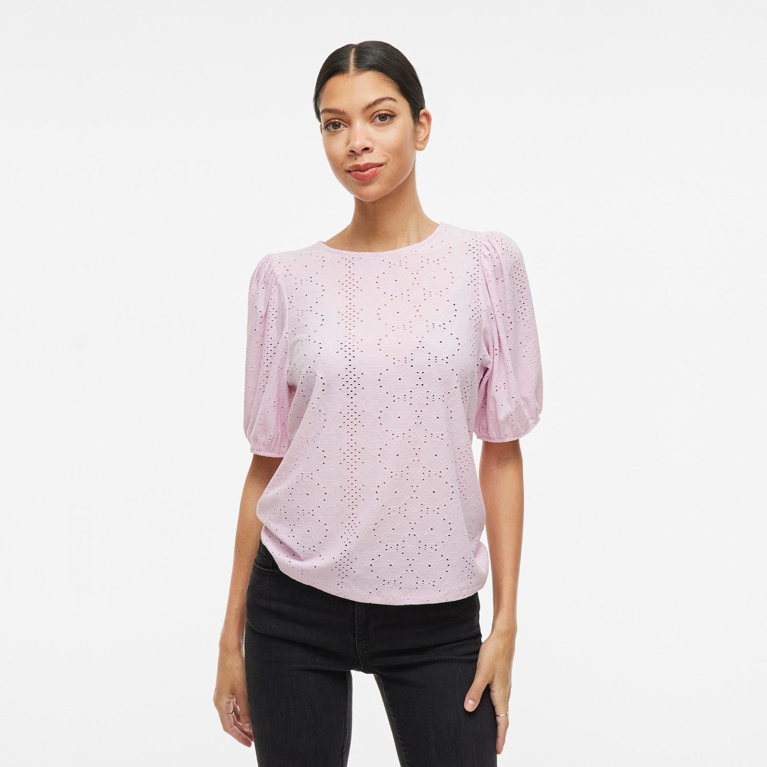 Leichtes Spitzentop mit Puff-Ärmeln.