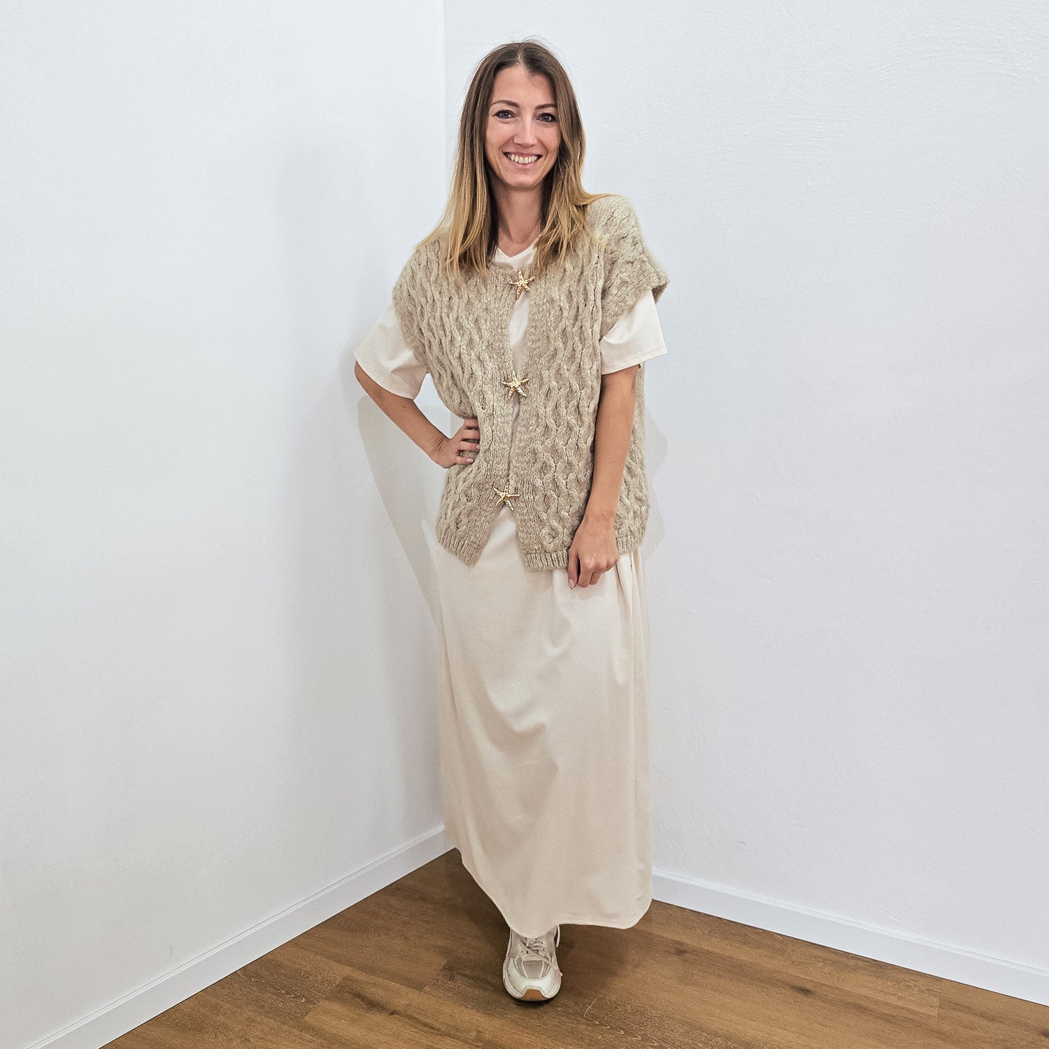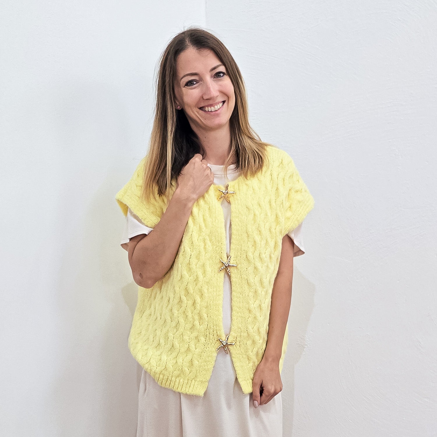 Weiche, kuschelige Weste mit roségoldfarbenen Seesternen als Knöpfe.