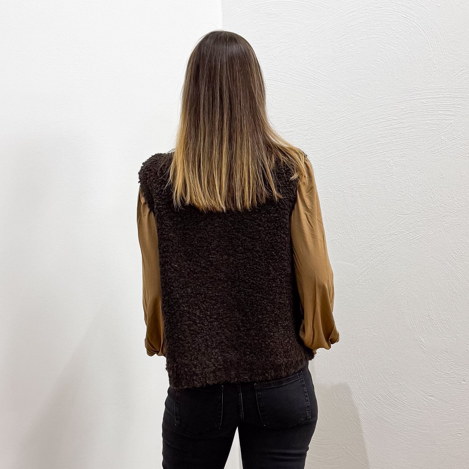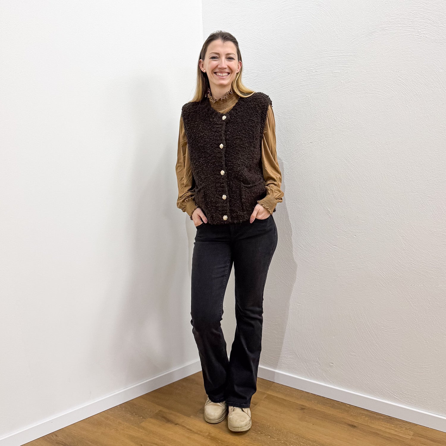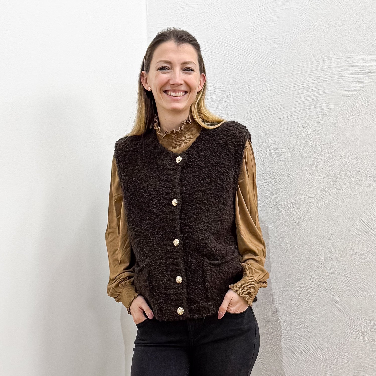 Weiche Bouclé-Weste mit goldfarbenen Knöpfen und Taschen.
